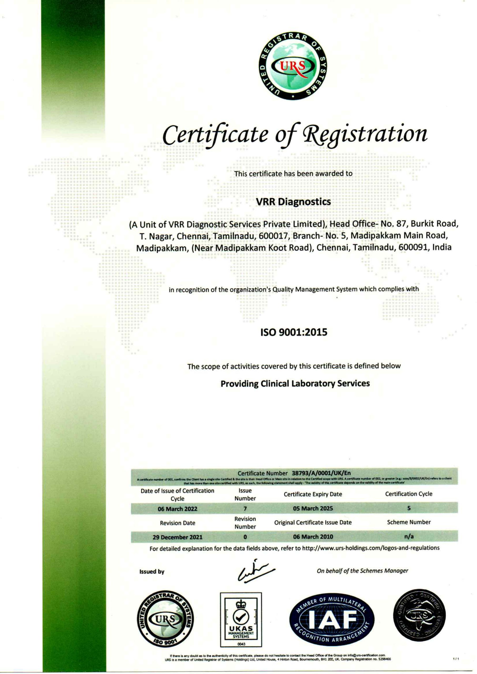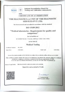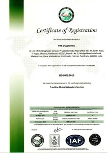 The laboratory’s quality is on par with the current standards. The laboratory is accredited by NABL (ISO 15189:2012) standards and certified by ISO 9001:2015 standards.